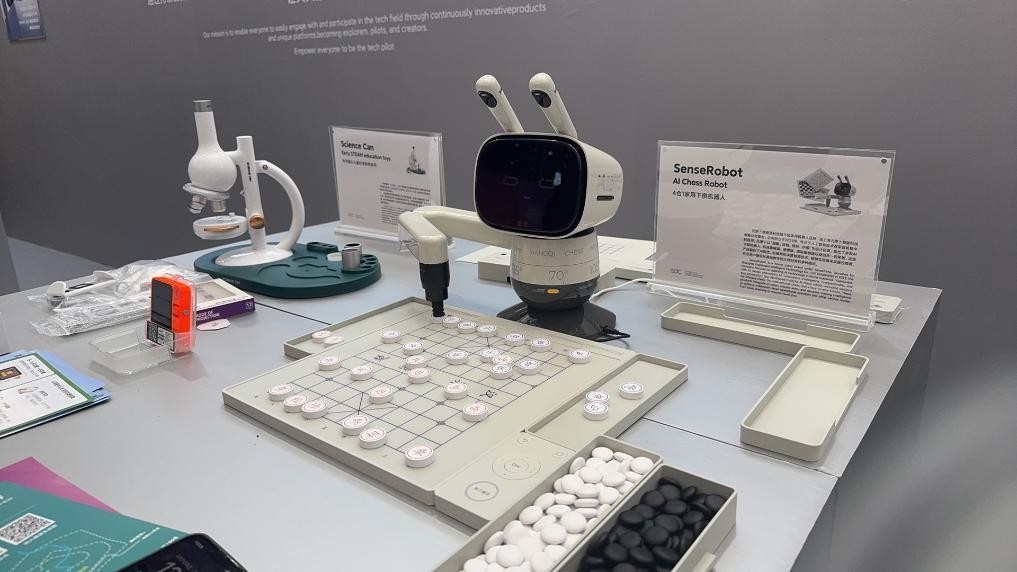 在2025全球开发者先锋大会“模速空间”专场上展示的AI下棋机器人。新华社记者 程思琪 摄
