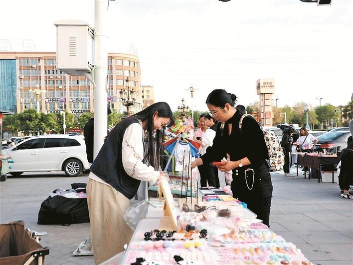 在十二师新天润天街的睦邻集市上,附近居民将书籍、手工艺品等闲置物品拿来售卖(资料图片)。兵团日报常驻记者 冯晓玲 摄