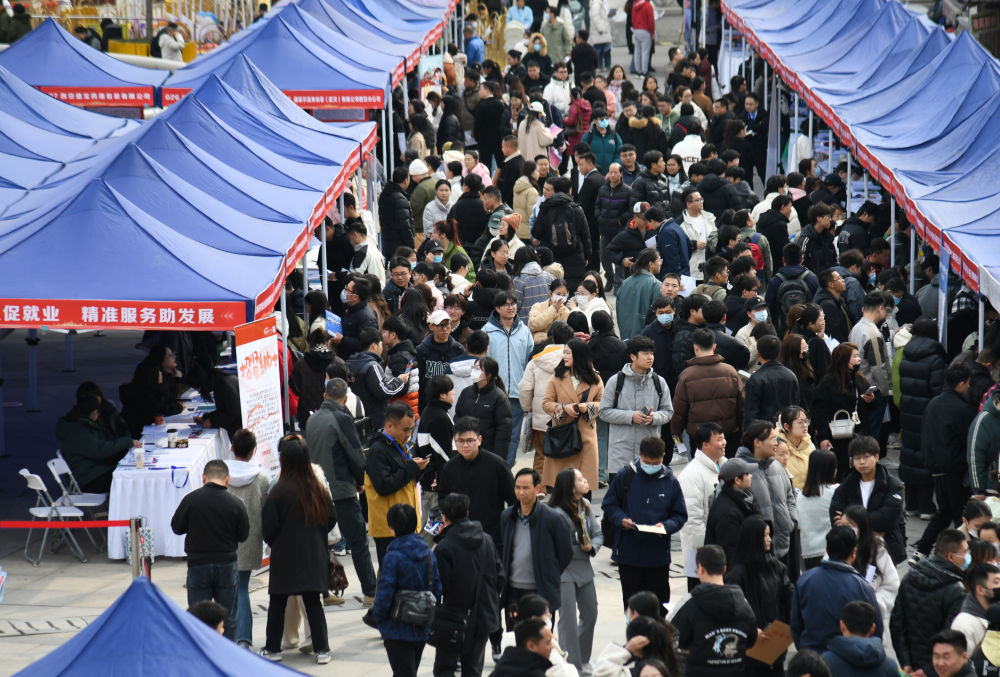 求职者在2024年陕西工会“春送岗位”就业服务月现场招聘会上了解招聘信息(2024年3月6日摄)。