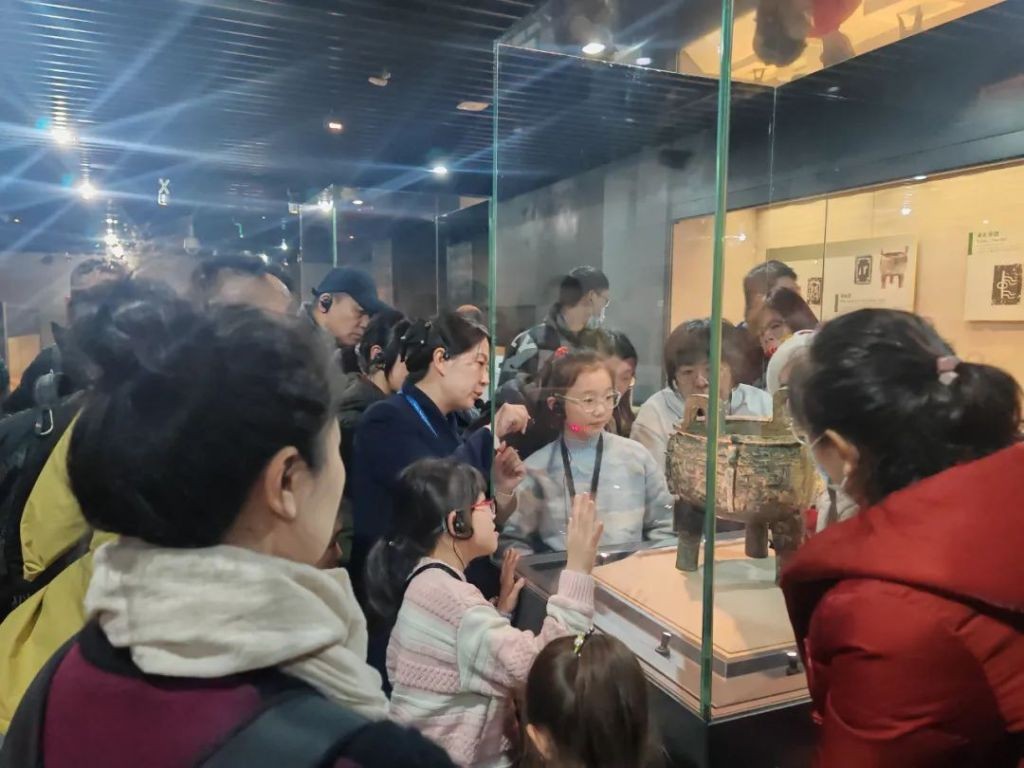 游客正在听讲解员讲解文物 “中国文字博物馆”微信公众号供图