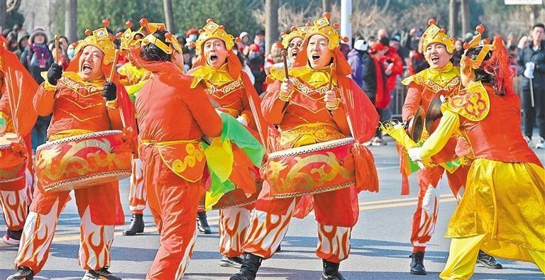 2月10日,河北邯郸市峰峰矿区玉皇阁路的社火表演喜庆热闹。郝群英 摄(中经视觉)