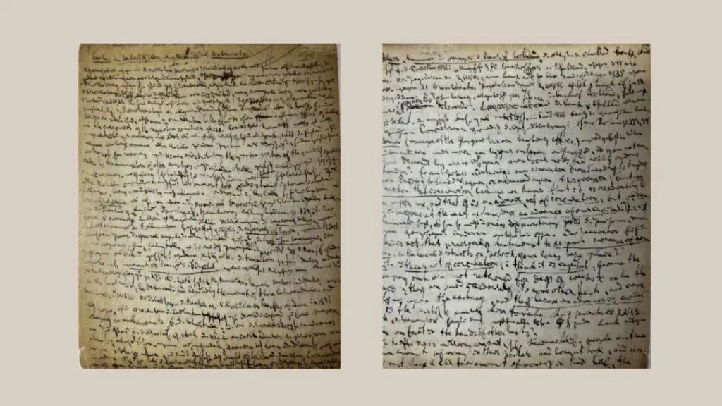 “马克思《伦敦笔记》笔记本Ⅱ前两页”手稿。