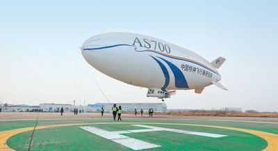 图为国产电动型载人飞艇AS700D在进行科研首飞。赵平 摄(人民视觉)