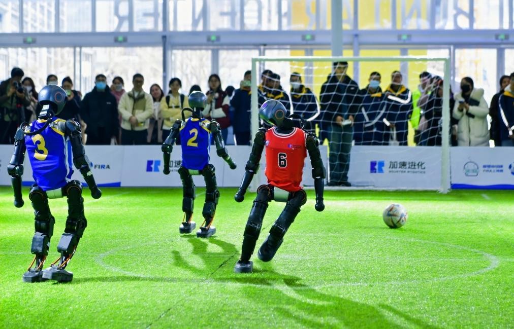 大会现场,机器人正在进行足球比赛。(受访单位供图)