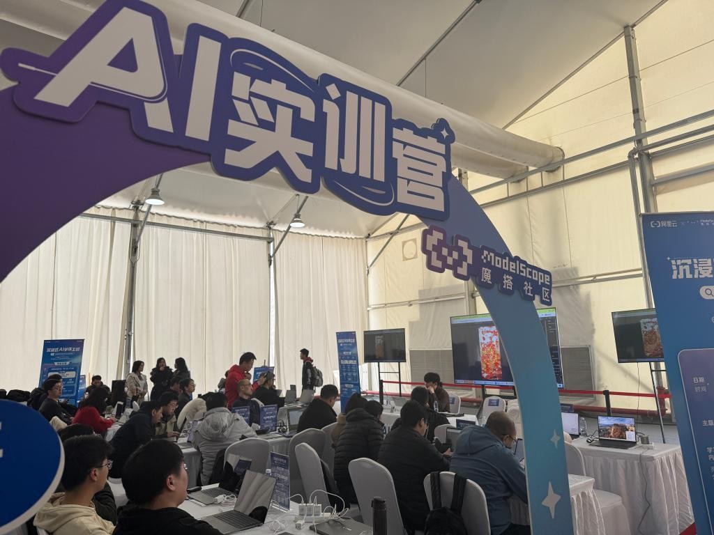 同期举办的AI实训营、AI工作坊等成为开发者们的“脑暴专场”。新华社记者 程思琪 摄