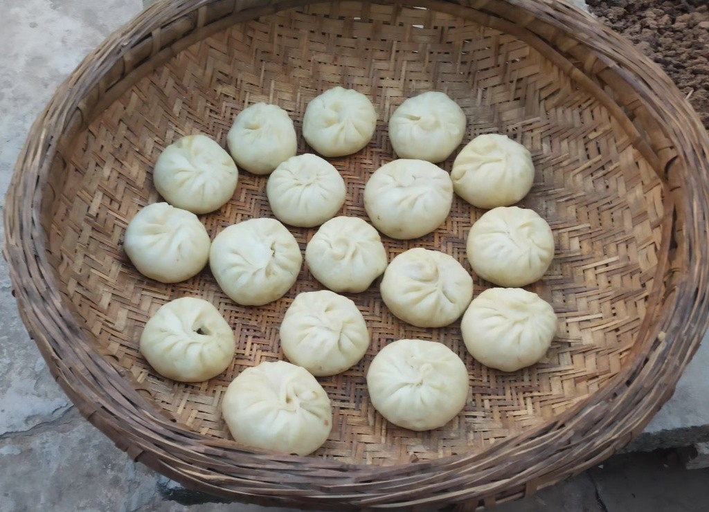 蒸好的菜馍(包子)