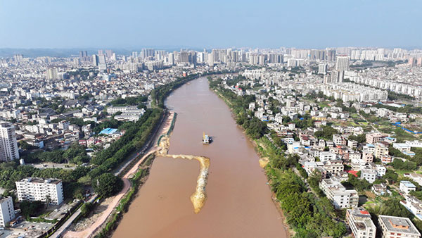 这是11月25日拍摄的平陆运河途径钦州市区的航道(无人机照片)。新华社记者 张爱林 摄