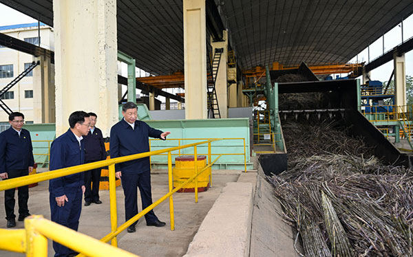 “一根甘蔗实现‘吃干榨尽’。这是一个附加值很高的产业!”总书记边看边说。