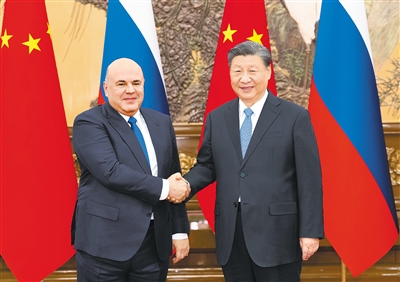 习近平强调,中国经济韧性强、潜力大、回旋余地广、长期向好的基本面没有改变。中国坚定推动高质量发展,推进高水平对外开放,将为包括俄罗斯在内的各国发展提供新机遇。双方要充分发挥政治互信、经济互补、设施互联、民心互通优势,不断丰富合作内涵,深化经贸、能源、互联互通等领域合作,共同维护产业链供应链安全稳定。双方要办好明后两年中俄文化年,多设计、多开展丰富多彩的人文交流活动,夯实两国世代友好的社会和民意基础。