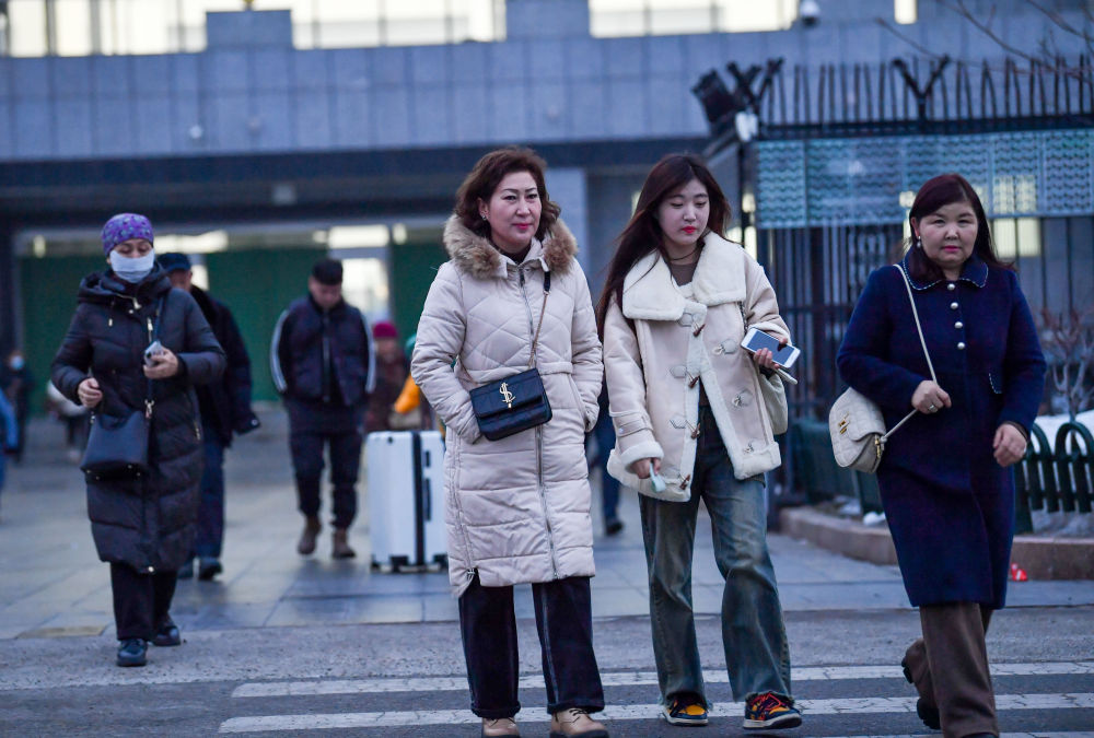 2024年1月15日,在新疆自贸试验区霍尔果斯片区的中哈霍尔果斯国际边境合作中心,商人通过快捷通道进入园区。新华社记者 赵戈 摄