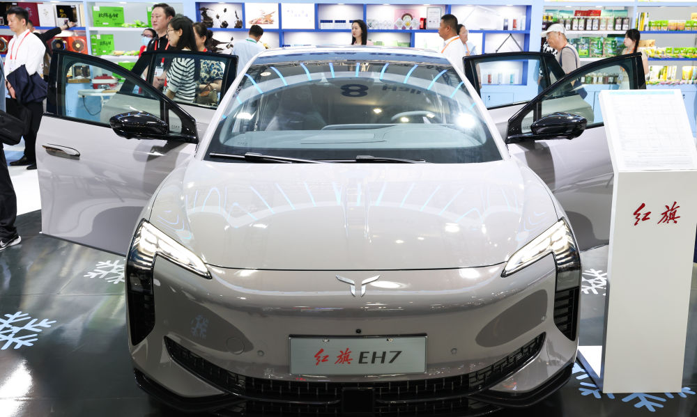这是在第四届中国国际消费品博览会上展出的红旗新能源汽车(2024年4月13日摄)。