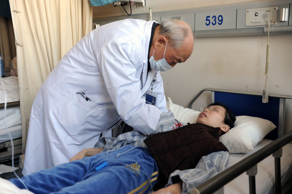 瑞金医院终身教授王振义在上海瑞金医院为病人看病(资料照片)。新华社发