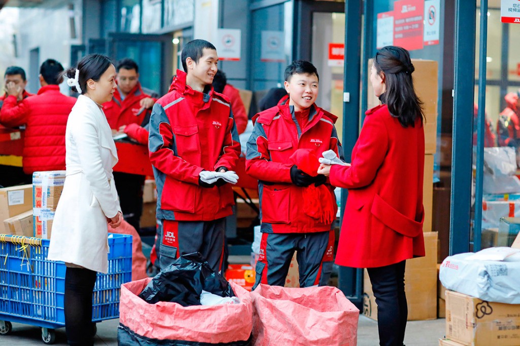 重庆市长寿区有关部门为快递小哥送上保暖物品和粮油年货。