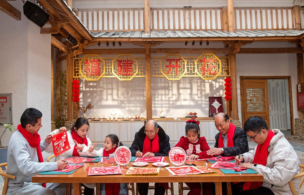 在福建德化,云溪刻纸既是当地百姓在年节之际用以迎新接福的一种传统艺术形式,也是深受大家喜爱的新年装饰,每逢佳节,家家户户剪红刻翠,也就成了一种习俗。日前,在该县杨梅乡云溪村一小院内,当地纪检监察干部、老党员、群众围坐在一起,满心欢喜地将新年的美好祝福一点点雕刻出来。