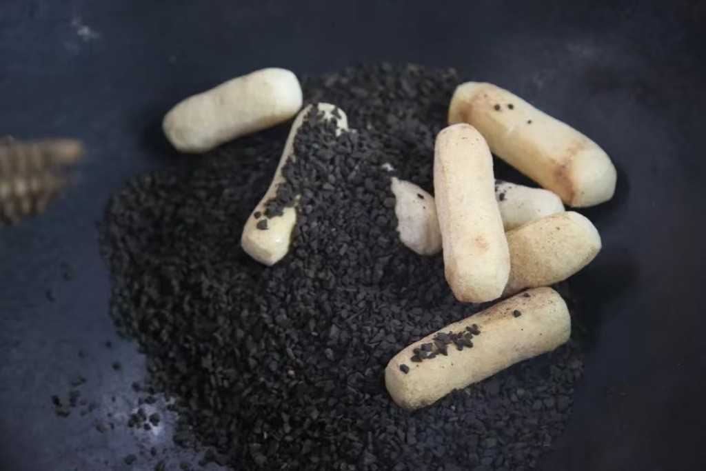 砂炒果果,顾名思义,就是用金沙江边的粗砂石混在果果里炒制,因砂石能长时间保持均匀高温,可以让果果在翻炒过程中受热更加均匀。果果炒好后,裹上熬制的糖浆,再撒上阴米子、芝麻、苏麻等香料,一道传统的砂炒果果就大功告成了。刚出锅的果果香飘十里,咬上一口,外香内甜,先脆后糯,一旦尝过,便难以忘怀,成为心头那份难以割舍的小确幸。