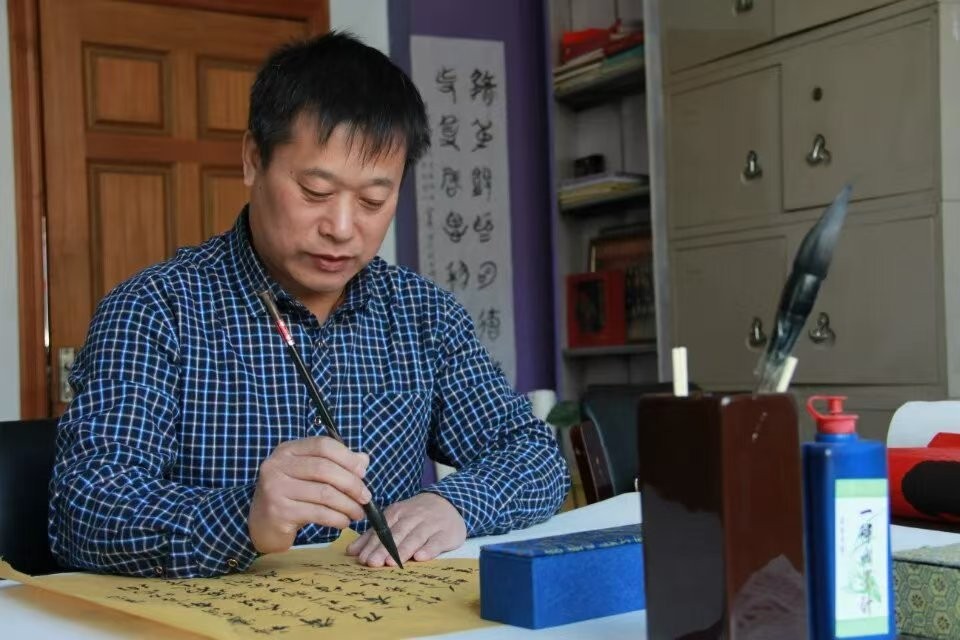 因多年与他熟识,并在采访中得知,范德俊早年在陶瓷厂从事陶瓷绘画、刻字工作。日积月累,使他在精通文字艺术的同时,对传统山水画也颇有研究,培养出他对我国传统文化意境绵长的审美特点,也正是在这一因素促使下,他笔下的作品亦文亦画,蕴含了我国传承千年的中华文化的精髓和传统。他认为书法不在于人,而在于境,境随心生,怎样的一颗心,书法中就会为读者呈现出怎样的意境,这就是书法艺术与书法的区别。