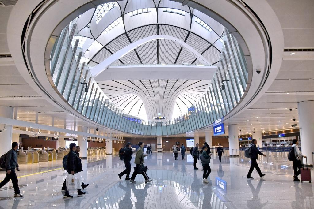 2024年12月27日,外国游客在北京大兴机场边检大厅准备入境。新华社发(鞠焕宗 摄)