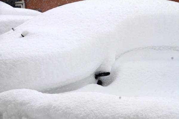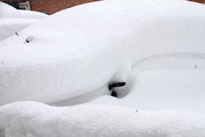 2023年12月22日,山东威海,车辆被雪覆盖。