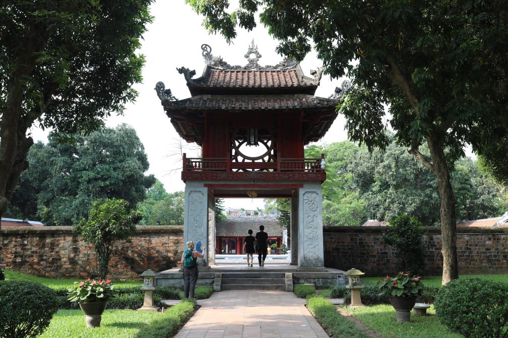 文庙是越南首都河内的历史文化地标。文庙内供奉着孔子,被誉为越南历史上“第一所大学”。在这里求一幅汉字书法作品,是不少本地民众和外国游客钟情的活动。