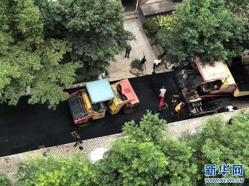 图为东辉社区金辉莱茵城小区实施小区路面改造工程。新华网发(张燊 摄)