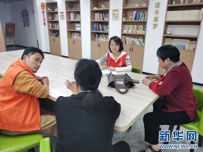 图为东韵社区工作人员与社工一起开导居民,化解纠纷。新华网发(张燊 摄)
