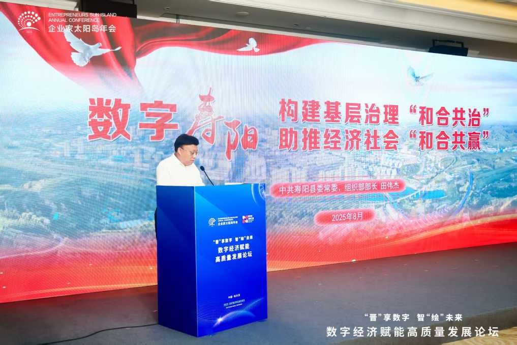 8月2日,在2025企业家太阳岛年会期间,“晋”享数字 智“绘”未来——数字经济赋能高质量发展论坛在黑龙江哈尔滨举行。来自政学研领域的专家齐聚“冰城”,交流互鉴,启迪智慧。山西省晋中市寿阳县委常委、组织部部长田伟杰分享了以“1881”数字化平台破解基层治理难题、驱动县域发展的实践路径,为基层治理和县域经济高质量发展提供了“寿阳方案”。
