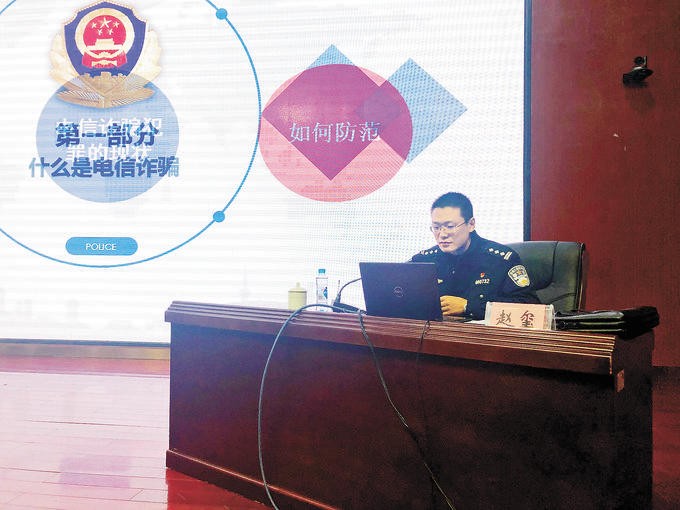 赵玺向辖区高校学生宣讲反诈知识。(资料图片)