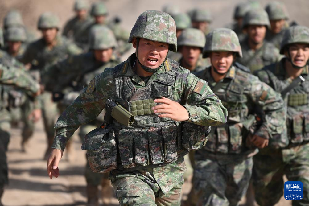 2024年11月29日 新疆军区某合成团连长郭强平带领连队官兵进行武装奔袭训练(2024年9月29日摄)。新华社记者 张永进 摄