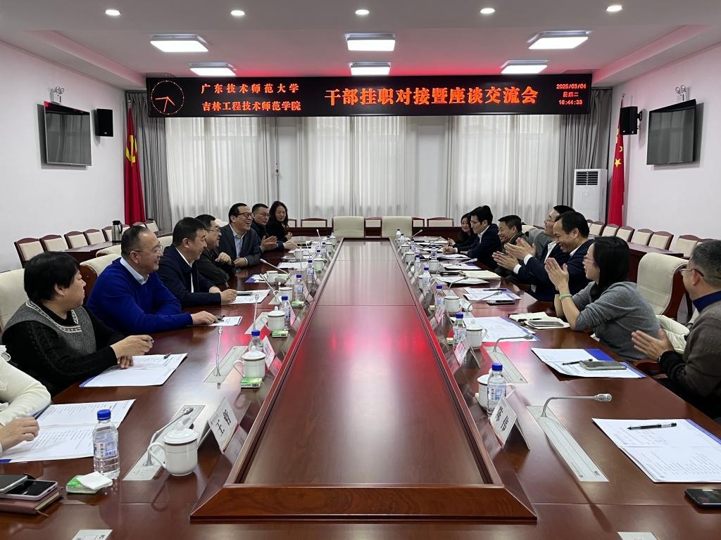 4日下午,王兵一行来到吉林工程技术师范学院,受到该校党委书记刘剑桥、校长杨晓东的热情接待。在座谈交流会上,刘剑桥对中组部选派广师大刘晓勇同志参加中组部专业人才服务东北项目,来吉林工程技术师范学院服务锻炼表示感谢,对兄弟院校的来访表示热烈欢迎。他表示,希望刘晓勇同志把改革开放地区的敢于担当、敢于创新的精神和广东技术师范大学好作风、好精神带来学校,在挂职担任校长助理期间,协助校长做好各项工作,推动学校高质量发展。杨晓东介绍了学校学生规模、学科专业建设、师资队伍、办学空间等情况。他表示,在“十五五”谋划之年,学校将积极地抓机遇、促合作、谋发展,广东技术师范大学干部到校挂职是两校加强交流的良好契机,希望两校积极合作,互融互促,共谋发展。